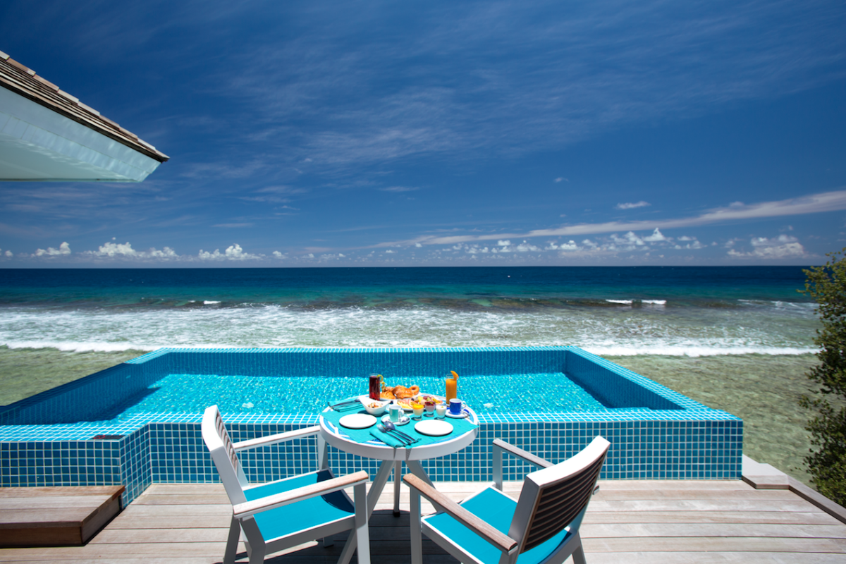 The ultra-cool Ocean Pool Villas are the ultimate overwater hideaways. Featuring an expansive deck above the crystal-clear blue waters, these villas come with your very own private pool. Enjoy uninterrupted views of the stunning Indian Ocean as you lounge away on the sunbeds. It's the kind of paradise dreams are made of!